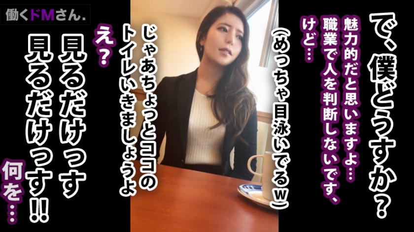 本作は、仕事に邁進する女性の職場へ勝手に現れ、一方的に撮影を行う強引なドキュメンタリーです。ターゲットは、かつて面接で「予定が合わない」と出演を回避した、結婚相談所に勤める相談員。彼女は「プロの技を知りたい」という好奇心から応募しており、面接では過去の経験やオナニー頻度まで包み隠さず話していました。後日、仕事中の彼女を突撃し、食事に誘うフリをしてトイレで密会。執拗な愛撫の末に顔射を見舞いました。その日の夜、不機嫌そうな彼女を「紹介したい男性がいる」と騙してホテルへ。待ち受けていた男優による背面からの抱擁で、激しいセックスが始まります。スラリと伸びた脚や、公称値以上のサイズを感じさせるバストなど、スレンダーながらも出色の美ボディを披露。当初の不満もセックスの快楽で解消されたようで、結婚には肉体の相性が不可欠であることを痛感する、有意義な職域演習となりました。