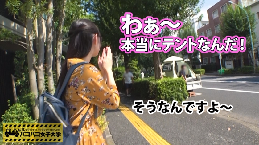 移動式テントで各大学を巡り、深夜番組風の演出で女子大生に接近して情事を記録する本企画。目標は都内137大学の完全制覇です。今回は伝統あるビジネス系大学「T大学」を訪問。T大女子は一見地味で真面目ですが、実は大雑把でマイペース、年上の経営者と交際する学生も多いのが特徴です。インタビューでは「ゴムを避ける彼氏」の不満を漏らす学生も。そんな中、商学部3年のさきなさんが登場。黒髪ポニーテールにメガネの知的な彼女ですが、高校時代は経験人数20人超という奔放な過去を持ちます。淡白な現彼氏への不満から浮気も厭わない彼女は、巨根男優の登場に大興奮。テント内で激しく愛撫され、指や玩具で絶頂を繰り返します。本番では喉奥を突く奉仕を経て、巨根に膣壁を拡張される激しいピストンに悶絶。最後は顔射で締め、「最上級に満たされた」と満足げに語りました。