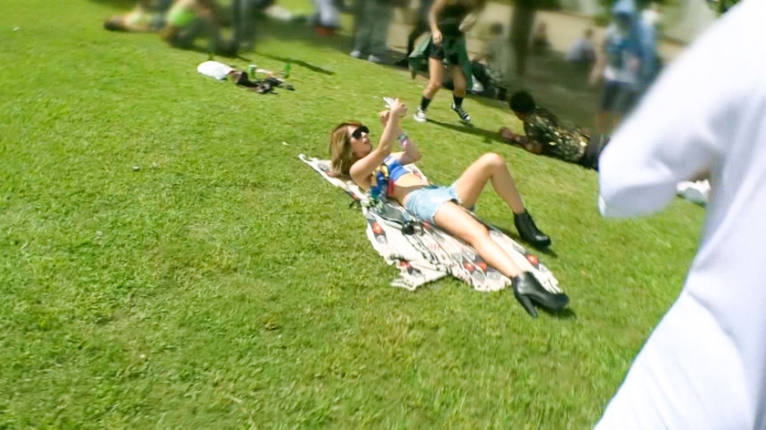 スレンダーでノリの良いギャル、るりちゃんとフェスで遭遇。ホテルに場所を移してシャンパンで乾杯すれば、彼女のムードは一気に高まります。手渡した飴を舐めとる彼女に、こちらの太い一物を向けると、そのまま官能的にペロペロと舐め上げました。終始楽しげな彼女は、自慢の胸にシャンパンを滴らせ「飲んで」とおねだり。男優二人が両脇からバストを愛撫すると、彼女は恍惚の表情を浮かべます。二本のモノを交互に咥え込む献身的な奉仕を受けた後は、背後からの激しいピストンで応戦。るりちゃんもダンスを踊るかのように腰をくねらせ、セックスの快楽に身を任せます。奥深くまで突き入れられる刺激に「気持ちいい!」と大歓喜し、二本の肉棒に貫かれながらぱちゅぱちゅと音を立てて潮噴射。会場の喧騒に負けないほど、エロティックなフェスがこの部屋で激しく開催されました。