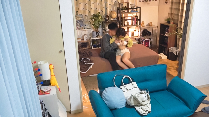 部屋に誘い入れた女性と、すぐさまベッドで密着し合う。既に行為へと至る空気は熟しており、迷わず彼女の肢体を求めた。ローターで自ら絶頂をなぞらせながら、その大きな胸を捏ね、乳首を舌と指で執拗に刺激する。クンニで十分に潤した後は、背後から抱き抱えて指で中を掻き回し、フェラやパイズリで昂ぶりを共有した。顔面騎乗での奉仕から騎転位へと繋ぎ、彼女が自ら腰を使い果てる。さらに背面騎乗位、立ちバック、そして背面側位でローターによるクリトリス責めを加え、快楽の極致へ。バックから正常位へと体位を移し、最後は豊かな胸に向けて射精した。隠しカメラは、激しく揺れる爆乳とその淫らな展開を逃さず記録している。