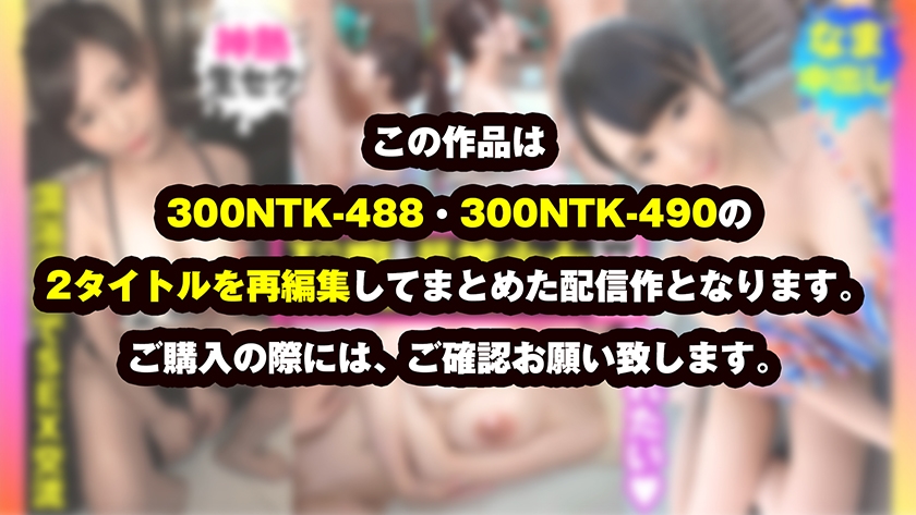 類は友を呼ぶとはまさにこのこと。今回は、温泉同好会に所属する美女・美少女の女子大生コンビを同時ナンパ!二人組ゆえの油断を突き、各個撃破を狙います。流石に本物の温泉で事は構えられないため、特設ステージをご用意。まずは爆乳を誇るIカップの先輩JDが登場。開放的な屋外でもノリノリで、ポロリ連発の露出から、勃起したペニスへの猛烈なフェラ、さらには豊かな乳房を活かした怒涛のパイズリへと雪崩れ込みます。後輩を置き去りにして個室へ移動すれば、そこは欲望解放の舞台。獣のように貪り合う熱狂のSEXが幕を開けます。さらに、可愛さ爆発のえちえちボディを持つ後輩編も同時収録。意外にも乗り気な彼女と二人きりの部屋で、甘く淫らな時間を過ごします。本作は「300NTK-488」と「300NTK-490」を再編集した、生ハメ入浴性交2本立ての豪華まとめ版です。